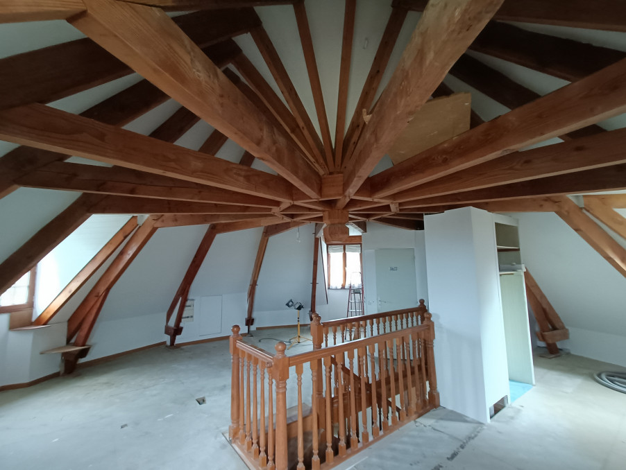 Sous-sol : buanderie, bucher, garage, cave, chaufferie (chauffage par pompe à chaleur neuve, production d'eau chaude par chauffe eau thermodynamique. Autre garage -atelier indépendant de 60 m².