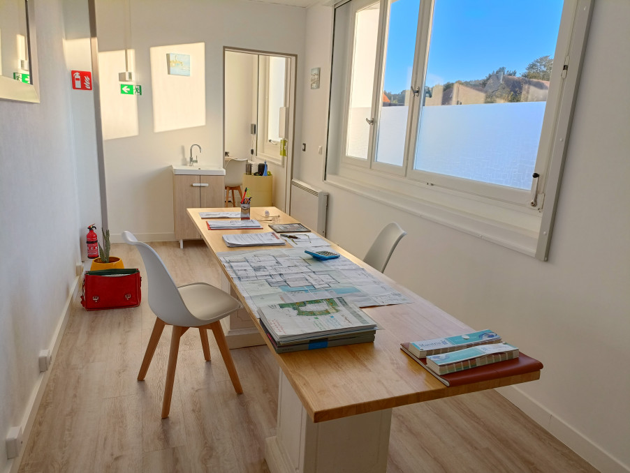 Un hall d'entrée (salle d'attente), deux pièces disposants chacun d'un lavabo,