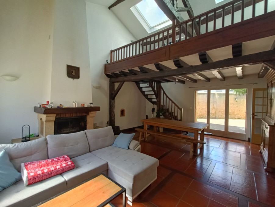 CHAUVIGNY CENTRE VILLE - Proche de toutes commodités et services - Belle maison ancienne rénovée avec façade en pierres apparentes comprenant : une entrée (2 placards), wc avec lave-mains, cuisine aménagée (16 m²), salon-séjour (37,50 m²) avec cheminée insert, au-dessus bureau-mezzanine. A l'étage : une chambre, SDB avec placard. Au second : deux chambres. Très belle annexe restaurée et attenante permettant d'augmenter la superficie habitable, de louer, ou d'y exercer une activité professionnelle.