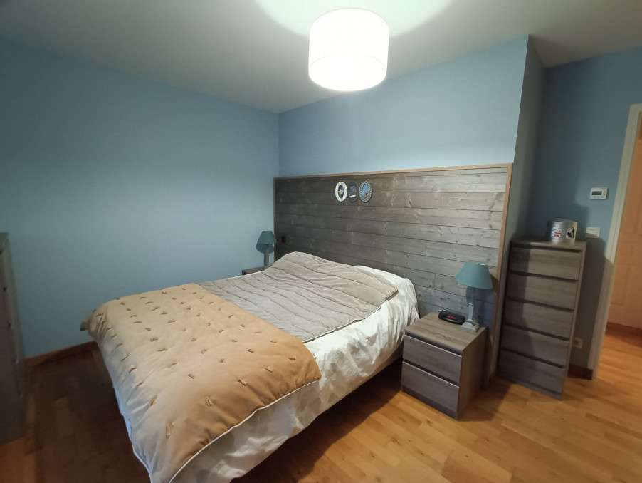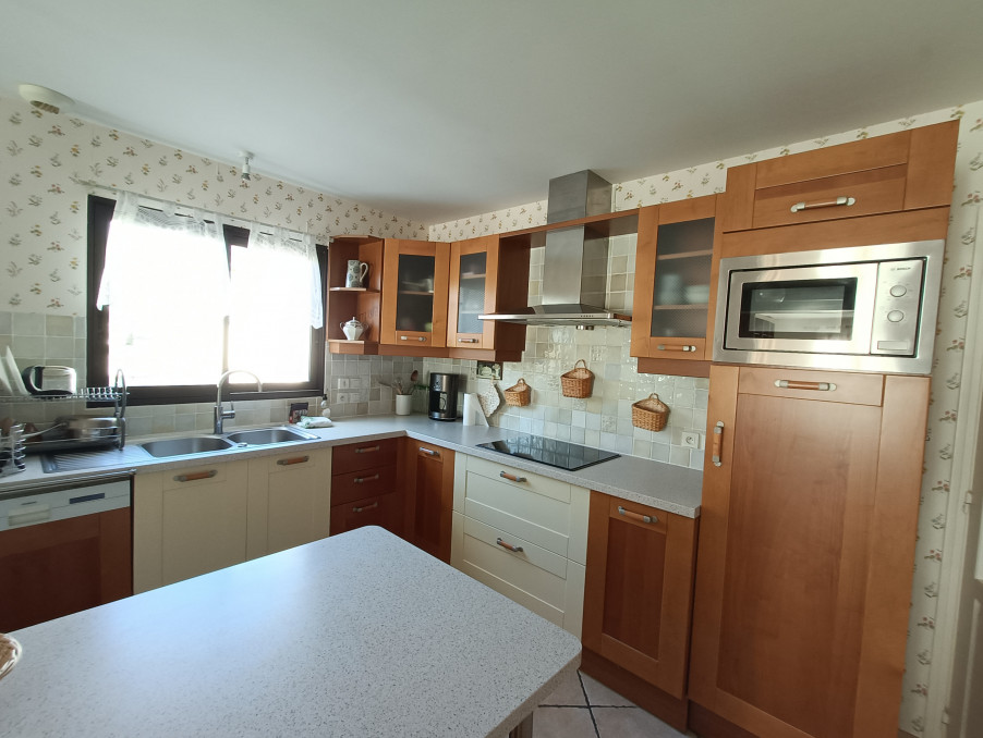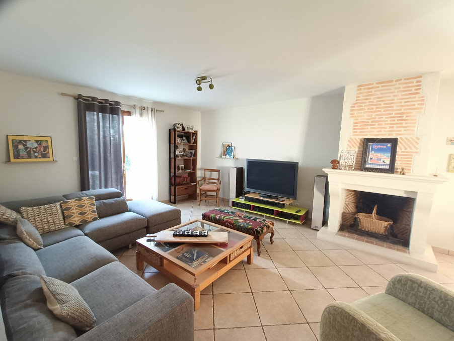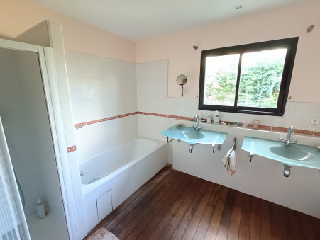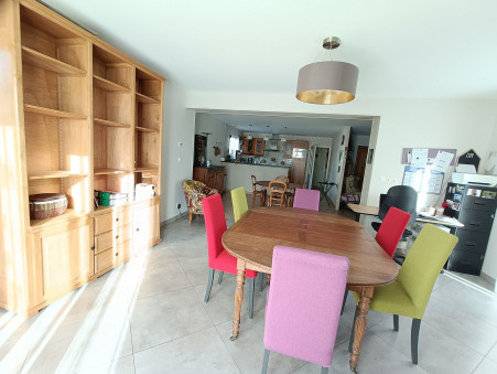 (avec cheminée ) 72 m², dégagement (placard), 3 chambres dont une suite avec placard et salle d'eau privative (22 m²), une salle de bains (douche, baignoire, double vasque), wc, cellier-buanderie (14 m²), atelier, garage (32 m²) salle de jeu avec baies vitrées (33 m²) cette pièce peut également avoir l'usage d'un garage. Cave enterrée. Jardin paysager de 1706, clos sans aucun vis-à-vis avec terrasse, piscine chauffée, divers abris. Chauffage par plancher chauffant électrique, panneaux solaire avec revente annuelle d'un montant de 1700 à 1800 euros. (estimation des coûts d'énergie évalué entre 2450 et 3360 euros,