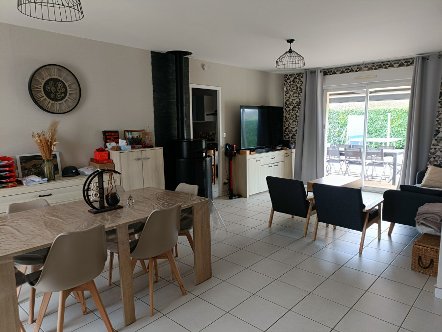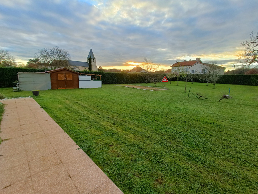JARDRES - Pavillon de plain pied comprenant une entrée, un salon-séjour avec poêle à pellets, une cuisine aménagée (possibilité d'une cuisine ouverte très simple), 4 chambres de 11 à 12 m² environ, (chacune avec placard), une salle de bains, un wc.