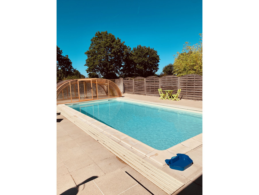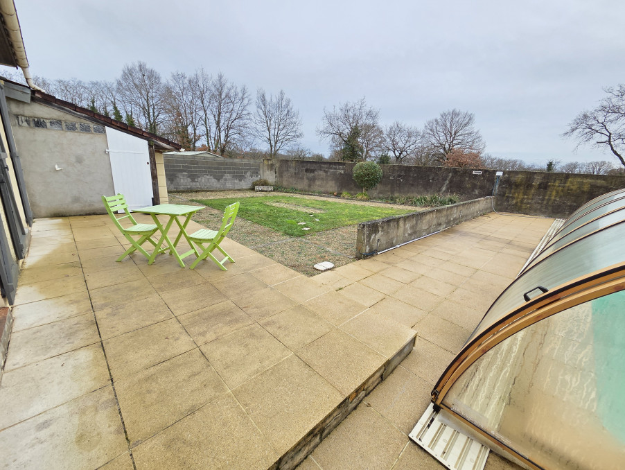 Nouveauté à la vente sur Montmorillon, à proximité immédiate des commodités et transports en commun, nous vous proposons un pavillon de plain-pied d'une superficie de 93m² habitables composé d'une entrée avec placard desservant un agréable séjour-salle à manger avec cheminée insert et un bureau en mezzanine, une cuisine aménagée et équipée récente bénéficiant d'un accès direct sur la terrasse, un dégagement distribuant trois chambres, une salle d'eau récemment rénovée (douche italienne) et un wc indépendant. Attenant à la maison, un garage de 30m² comprenant un espace chaufferie-buanderie avec un grenier sur l'ensemble. A l'extérieur, vous découvrirez un jardin agrémenté d'une terrasse sans vis-à-vis ainsi qu'une piscine de 9M par 5M équipée d'un dôme permettant de prolonger la période de baignade, le liner a été remplacé dernièrement. Chauffage par pompe à chaleur (3 ans) jumelé avec une chaudière fioul, l'ensemble des menuiseries sont équipées de double vitrage PVC. Raccordée au réseau d'assainissement collectif. Ensemble bien entretenu avec un bon classement énergétique!